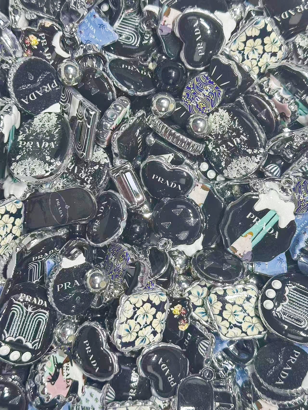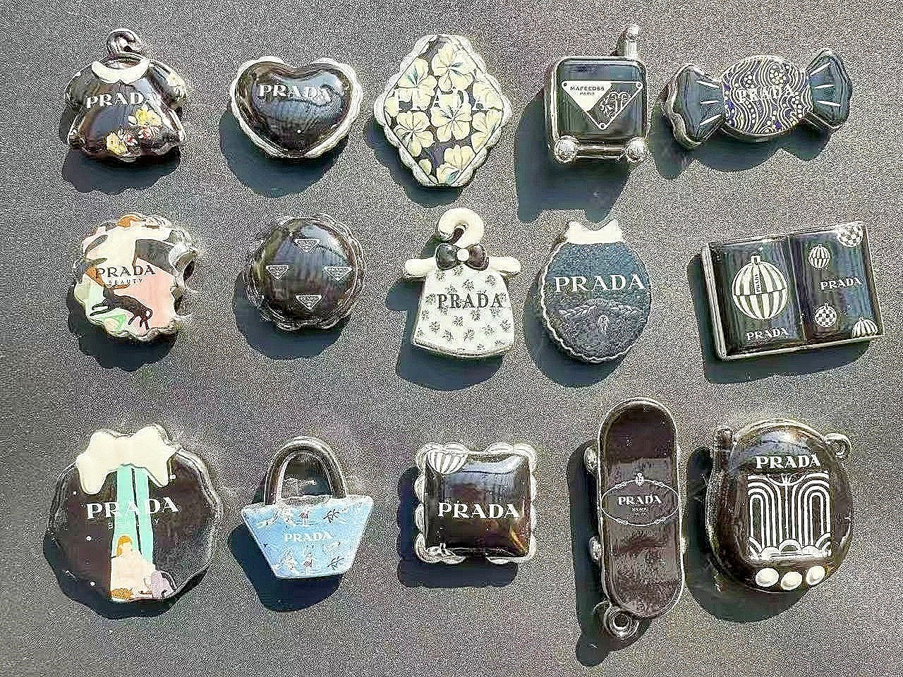 12.10NEW【A385】プラダ(シルバーメッキロゴビーズ15種類とアクリルビーズ1種類とメッキビーズ1種類)