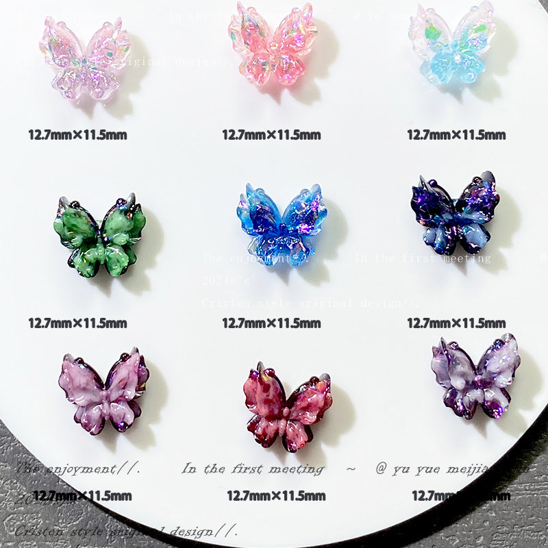 10.29再入荷と更新あり【A318】暗夜に光る蝶(夜光ソフト蝶々9色、12.7×11.5mm)