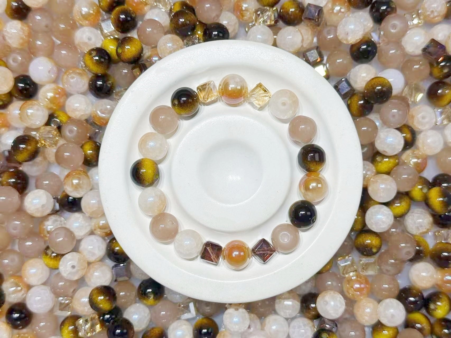 11.13NEW【B110】ティーシャンパン(UVメッキのメノウ1種類、高品質ガラスビーズ5種類)
