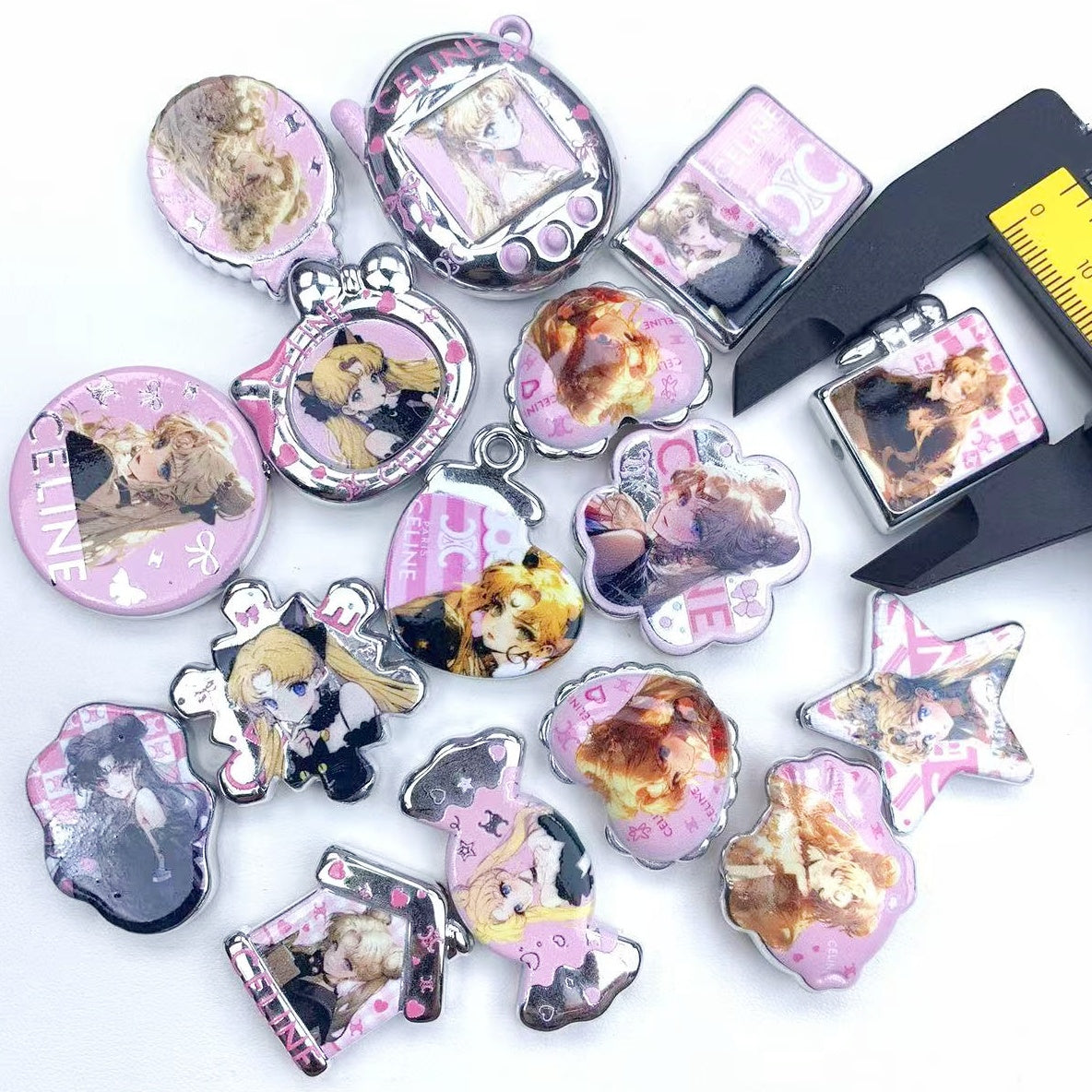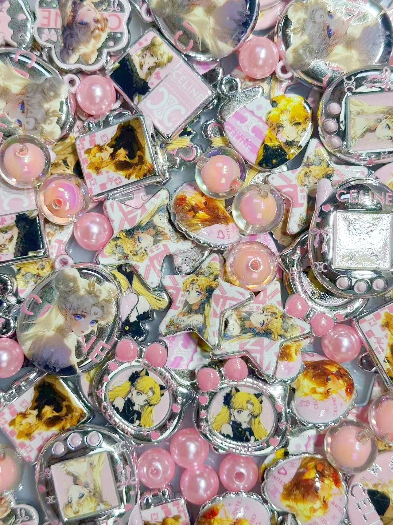 12.24NEW【A404】セリンムーン・月野うさぎ(シルバーメッキCELINEロゴビーズ約15種類と二重アクリルビーズ1種類とパール12mm1種類)
