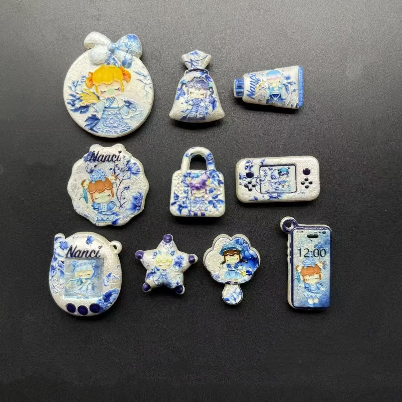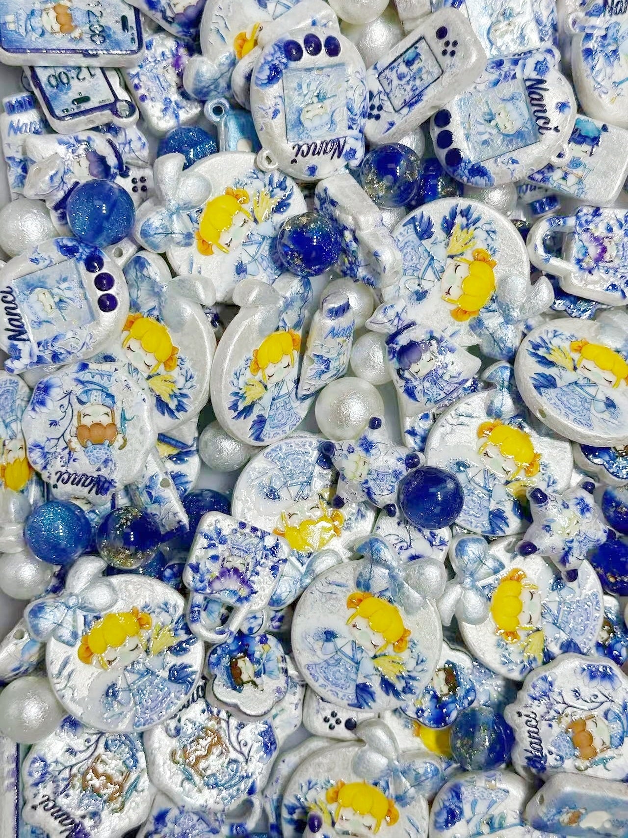 ♥予約製♥2.10NEW【A453】青花の天女・ナンシー(コットン浮き彫りキャラビーズ10種類、コットンビーズ1種類とレジン2種類)