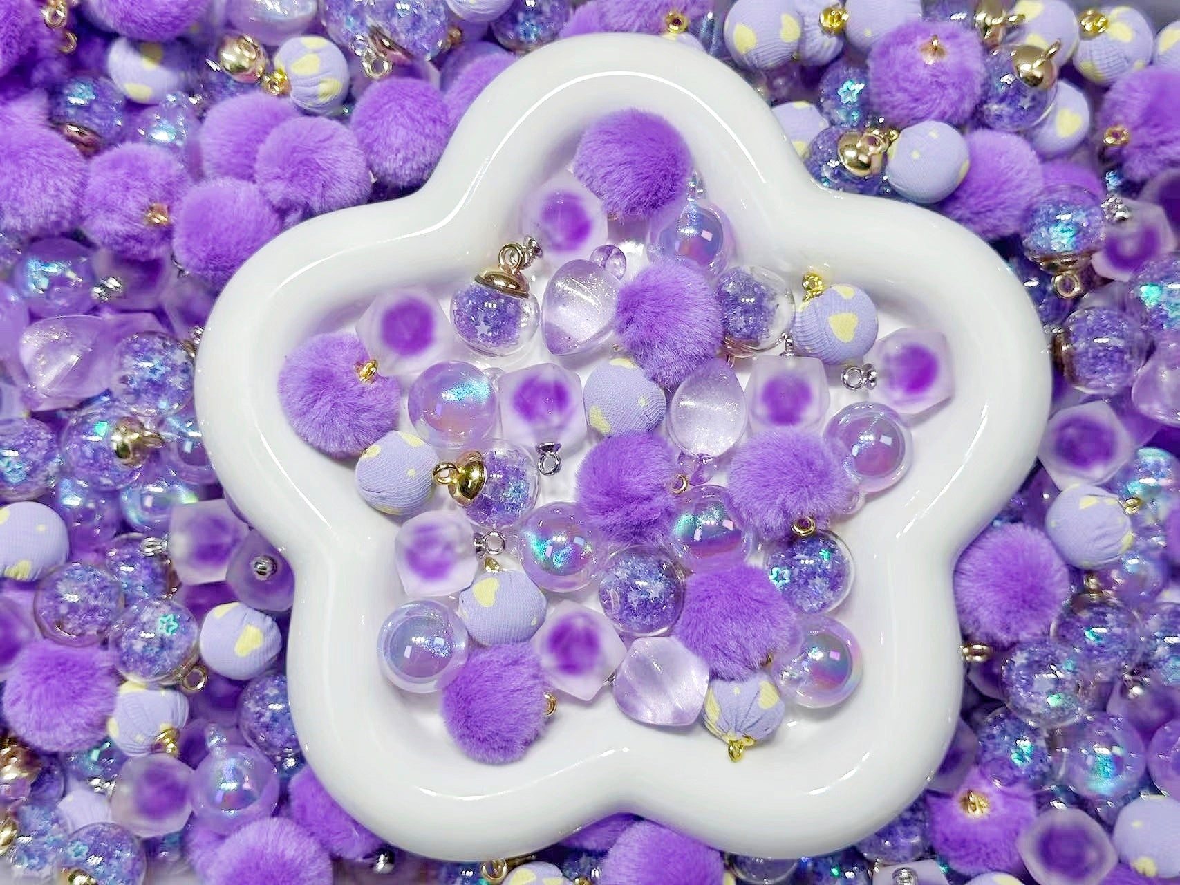 2.25NEW【L068】夢見るふわり紫(夜光あり、カン付き6種類のリース用大ミックス)