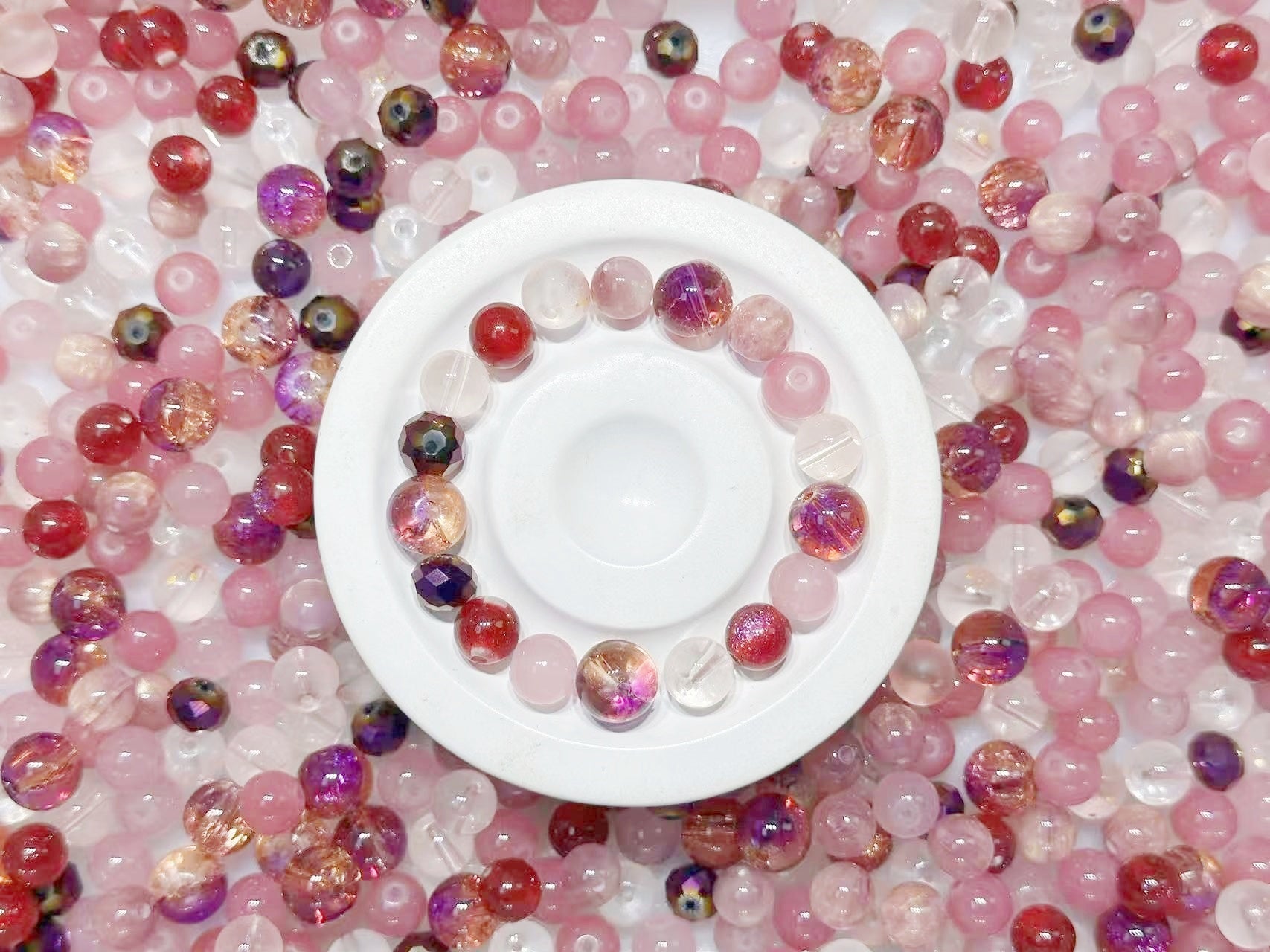 2.11NEW【B125】バレンタインデーの告白(レジンビーズ2種類、高品質ガラスビーズ4種類とガラス多面カット1種類)