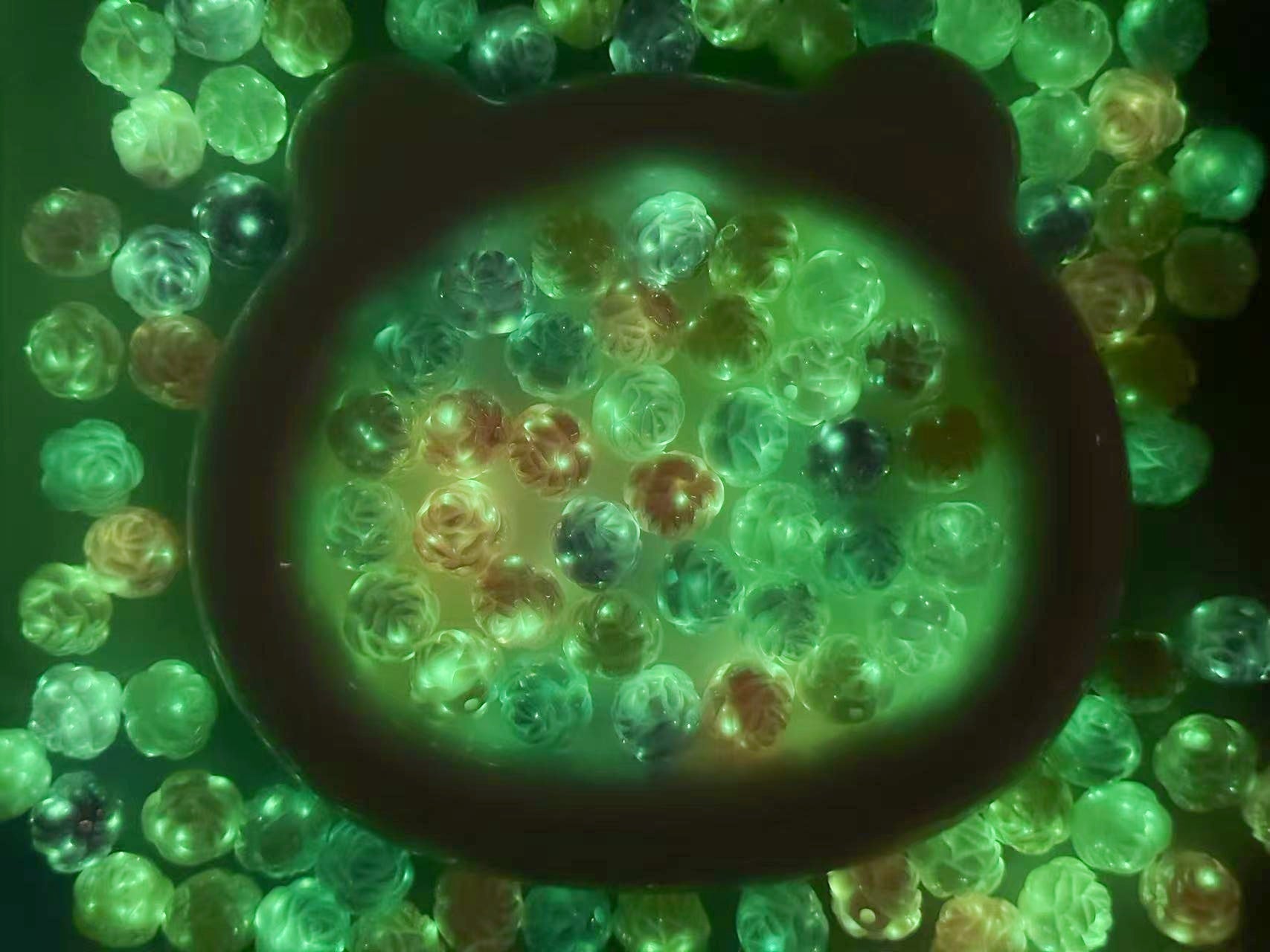 ♥人気♥10.30再入荷【T062】ローズキャンディー(♥夜光♥カンなし、オーロラ加工、アクリル、16mm)
