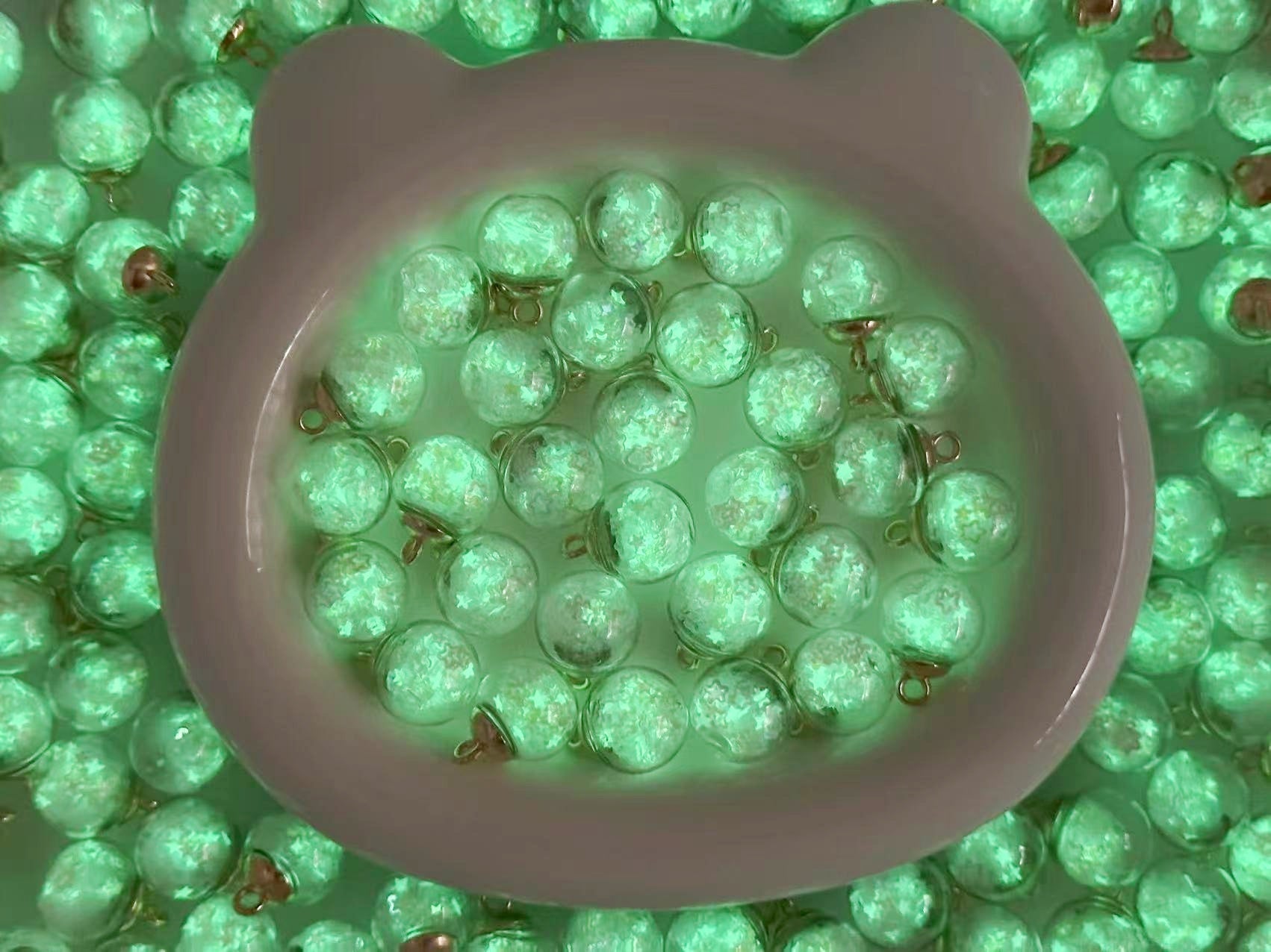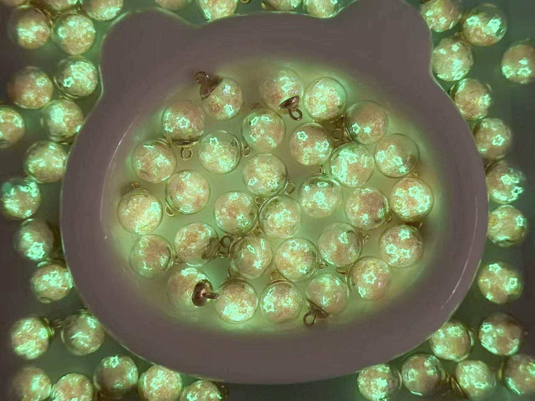 11.6再入荷【T058】(段階式割引あり)星ラメ入りビーズ(夜光、カン付き、16cm)